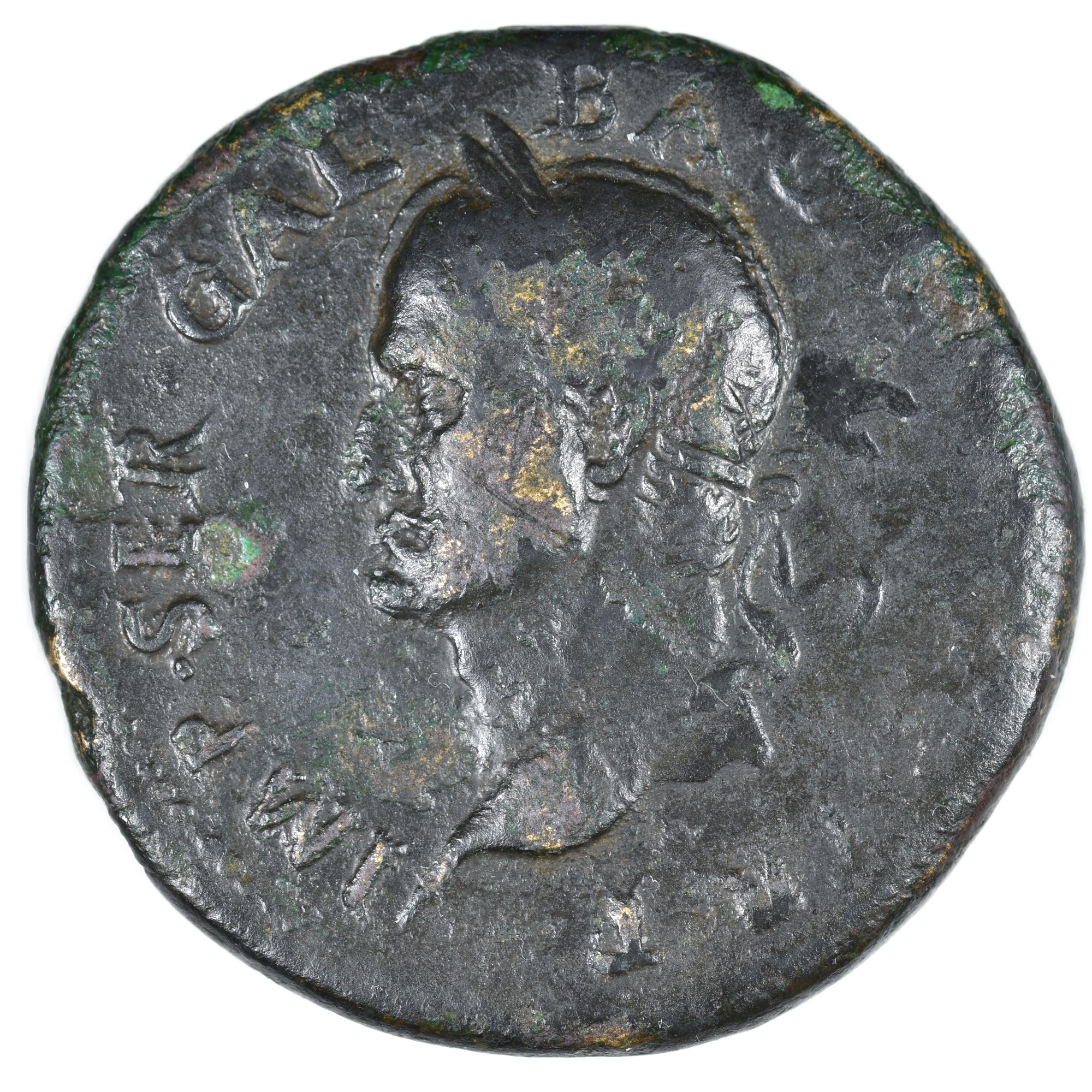 Description avers : Tête laurée de Galba à gauche.
