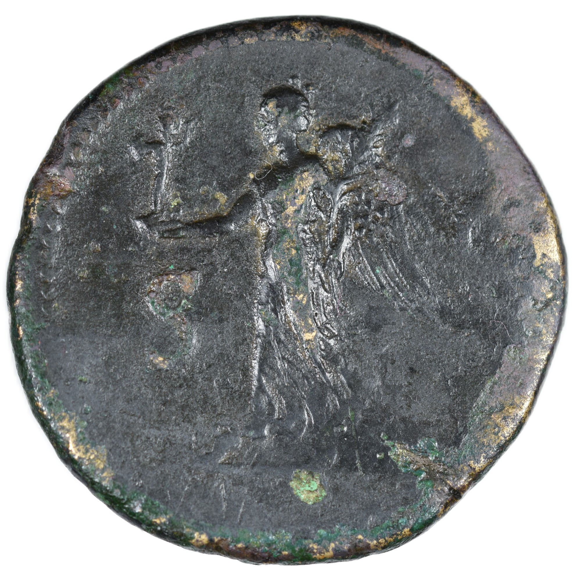Description revers : Victoria (la Victoire) marchant à gauche, tenant le palladium de la main droite étendue, et de la gauche, une palme.
