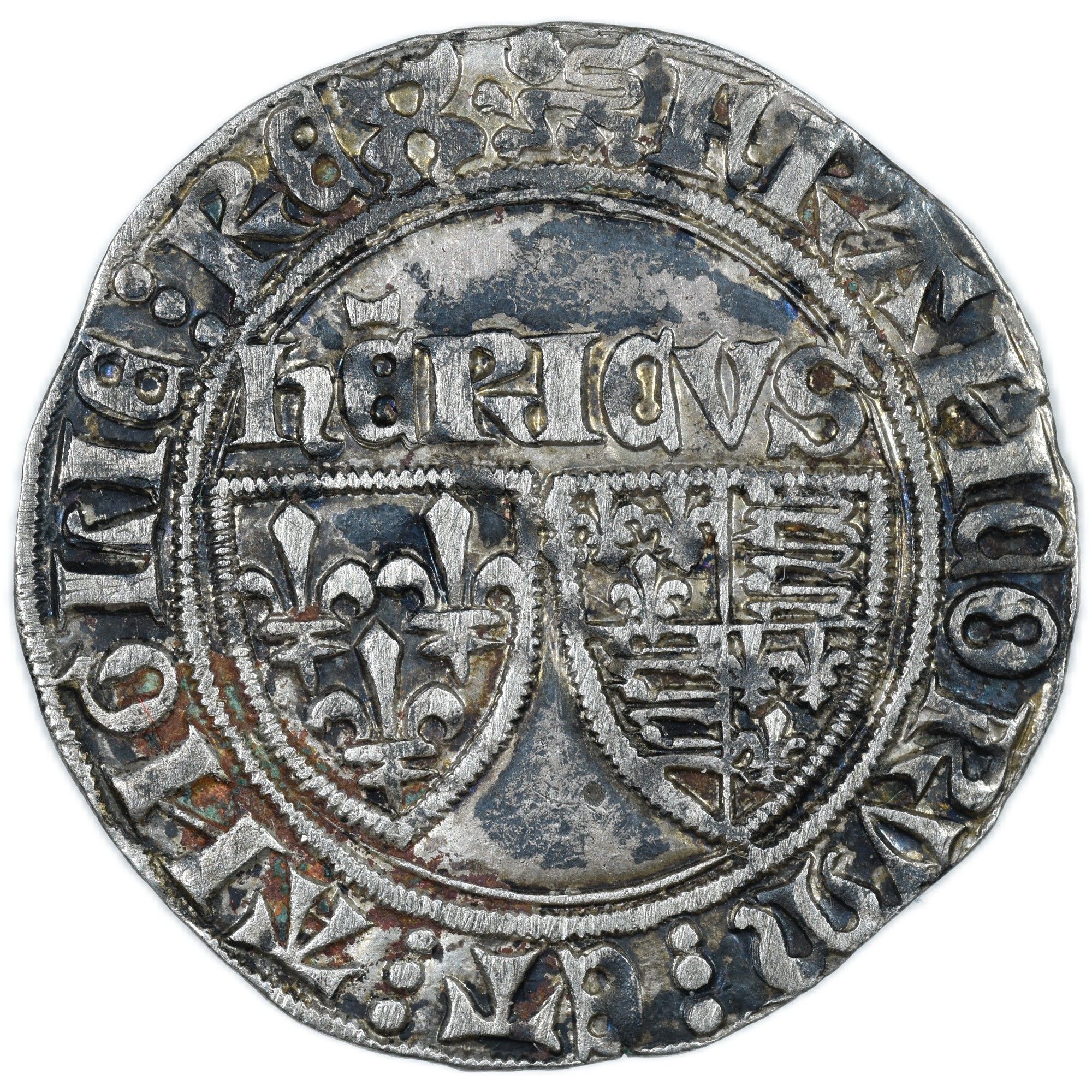 Description avers : Écus de France et d’Angleterre accostés, HERICVS