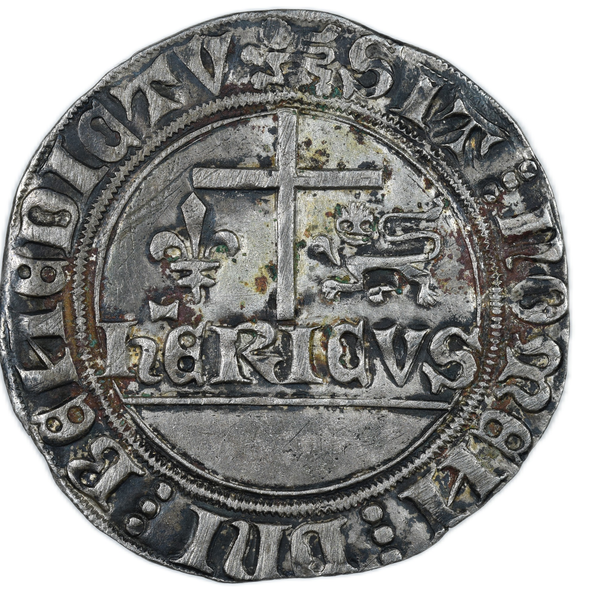 Description revers : Croix entourée d’un lis et d’un léopard, HERICVS