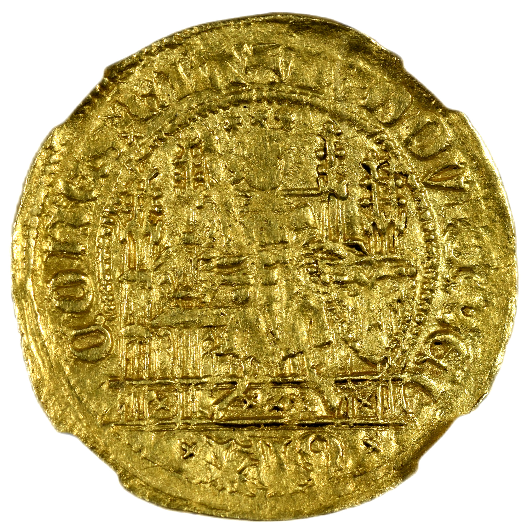 Description avers: Le comte assis sur un trône gothique, tenant l’écu à l’aigle.