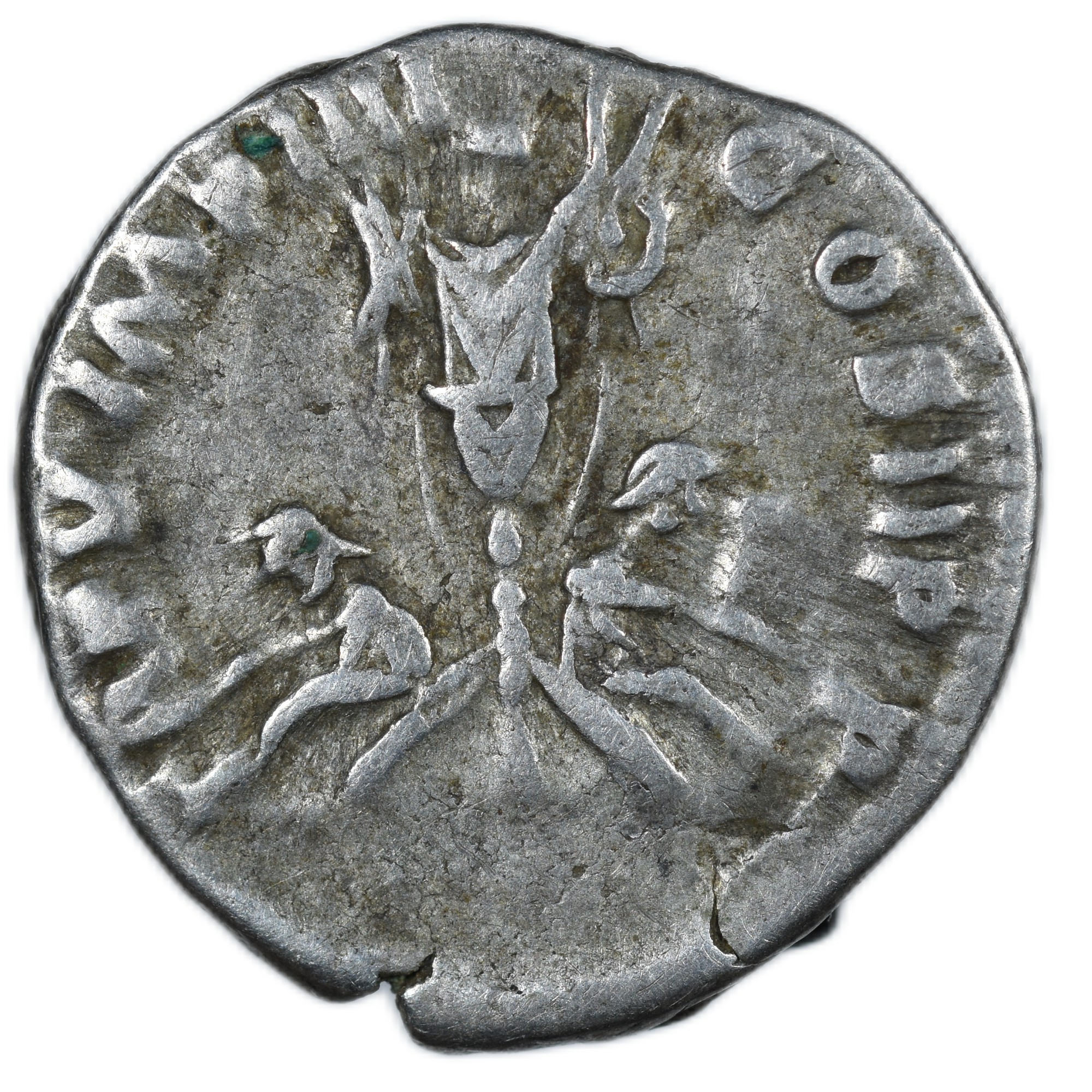 Description revers: Trophée d’armes entre deux captifs Germains.