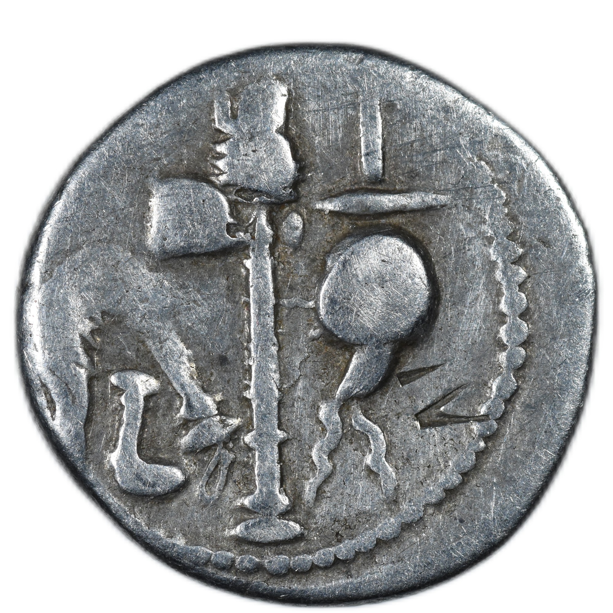 Description revers : Instruments pontificaux : simpulum, aspersoir, hache à sacrifice, chapeau à sacrifice.
